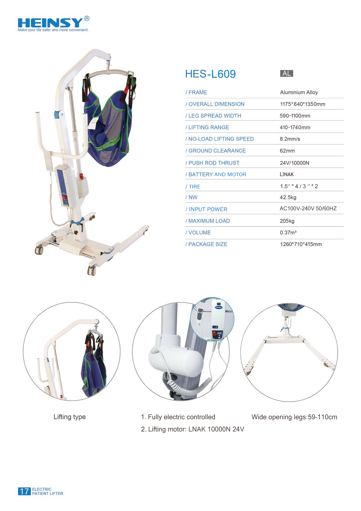 Als unser Starprodukt hat der vollautomatische Lift L609 James großes Lob für seine überlegene Leistung und sein benutzerfreundliches Design erhalten. Es nutzt einen LINAK-Motor für einen stabilen und zuverlässigen Betrieb. Das elektrische Steuersystem ist einfach zu bedienen, Dies erleichtert das Bedienerlebnis für das Pflegepersonal erheblich . Die verstellbare Beinöffnungsweite von 59-110 cm ermöglicht eine flexible Anpassung an verschiedene Szenarien. Der leistungsstarke LINAK 10000N 24V-Hubmotor sorgt für sichere und reibungslose Hebevorgänge. ( Beide Beine bieten eine extrem geringe Bodenfreiheit von 6,2 cm und ermöglichen so eine reibungslose Anpassung an verschiedene Tiefbett-Szenarien. )