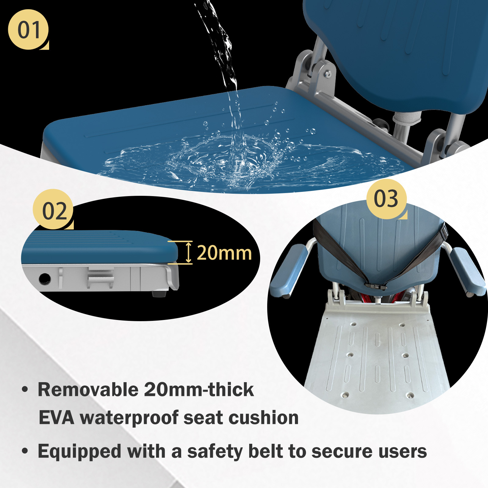Um langfristige Zuverlässigkeit und niedrige Wartungskosten zu gewährleisten, integriert Heins Medical eine komfortables Pflegekonzept in den HES-L609. Der korrosionsbeständige Aluminiumrahmen muss zur Sauberkeit nur leicht abgewischt werden, während der 20 mm wasserdichtes EVA-Sitzkissen ist abnehmbar, waschbar und schnell trocknend.